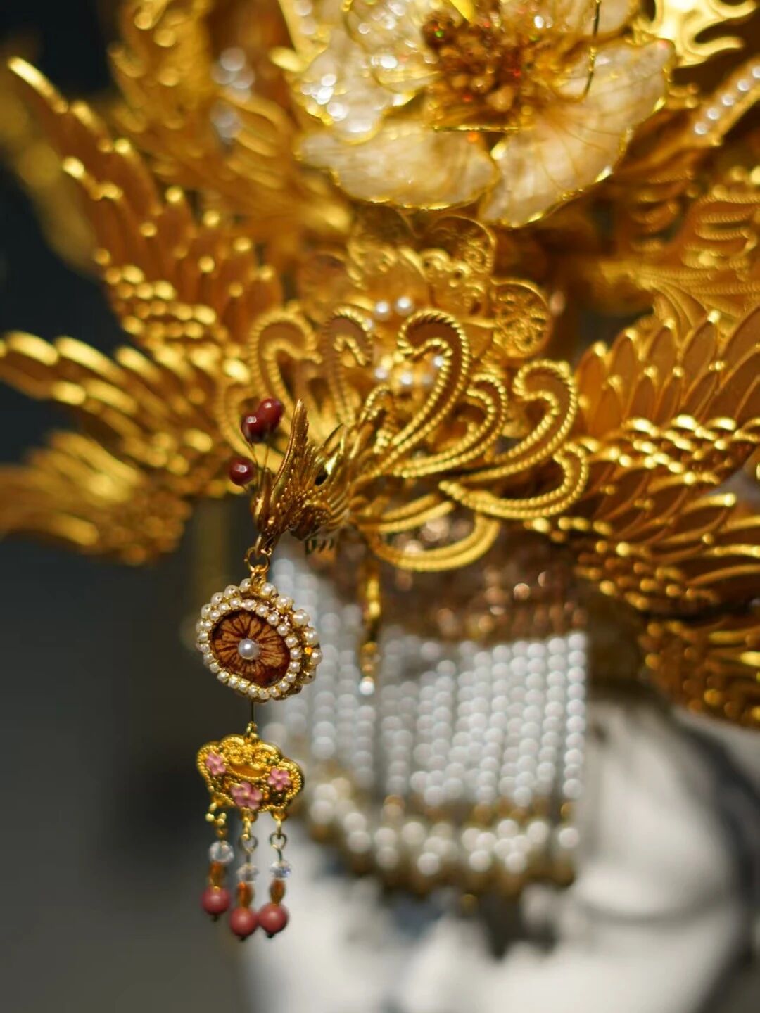“中藥之冠”由揚子江聯合文化創作博主共同打造,設計靈感源自傳統龍鳳冠,既承載了“龍鳳呈祥”“健康長壽”的美好寓意,又實現了對中藥材的藝術化再造。制作團隊從上百種藥材中精選20余味,用特殊工藝保留藥材天然質感與清雅藥香:木蝴蝶被塑造成層疊的牡丹花瓣,金銀花與紅豆搭配成精巧花蕊,冠冕流蘇則由多味藥材研磨制成的香珠串聯而成,成為可觀賞、可感知的中醫藥文化新載體。