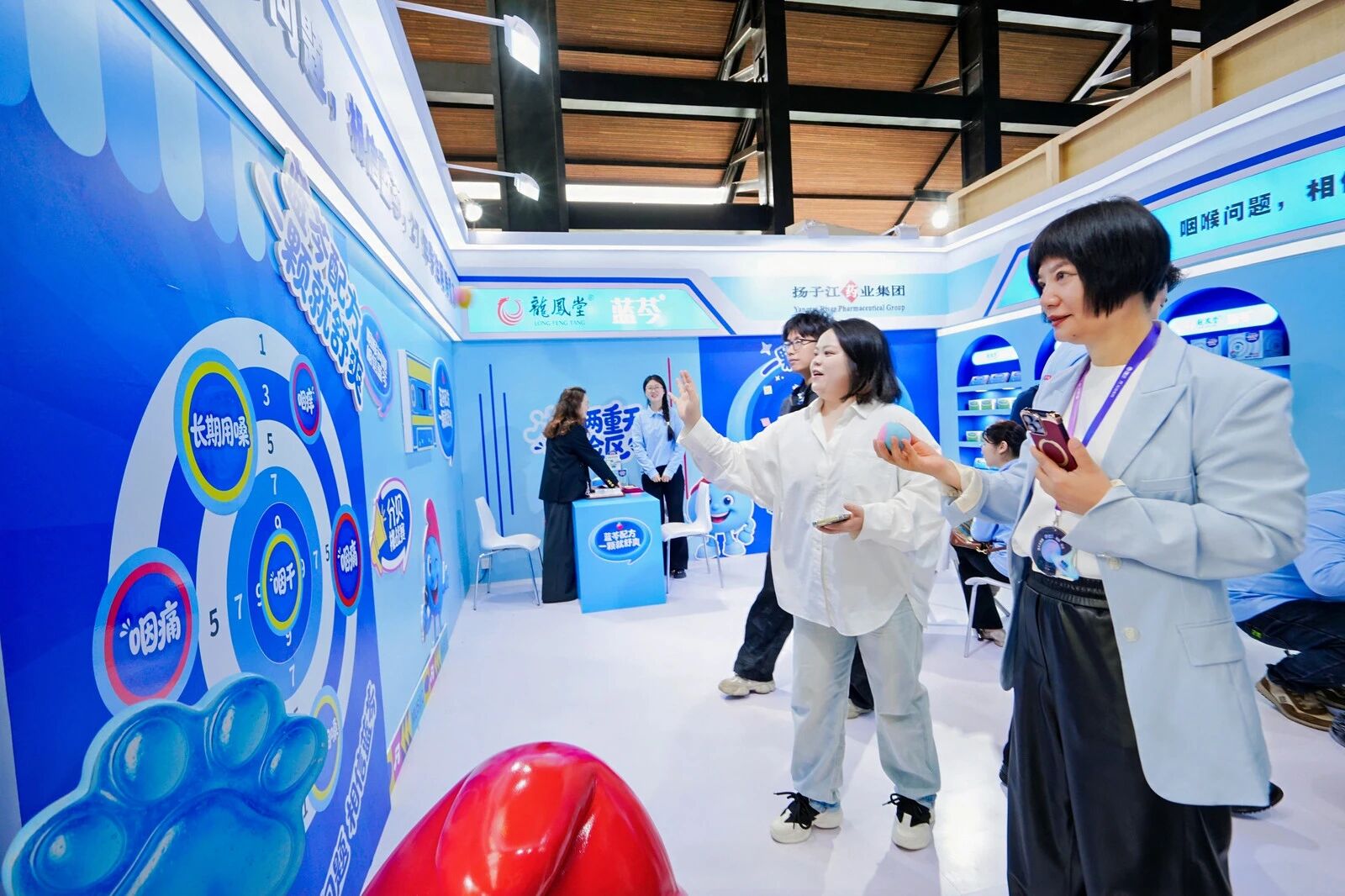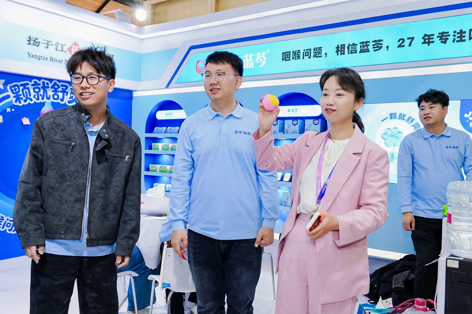 大會現場,揚子江藥業集團通過護喉場景模擬等趣味互動形式,讓參會者直觀感受到“藍色集裝箱”產品品類從“治療”向“日常健康管理”延伸的完整邏輯——以藍芩口服液為核心基礎,拓展出適配辦公、娛樂等多元場景的藍芩喉糖,以及填補低齡人群市場空白的小藍芩棒棒喉糖等健康產品,實現對不同年齡、不同場景護喉需求的覆蓋。多位參會者在親身體驗藍芩喉糖后,對“藥品+大健康”的產品組合優勢予以認可,并主動圍繞合作細節展開探討,表達共同打造場景化健康服務的意愿。